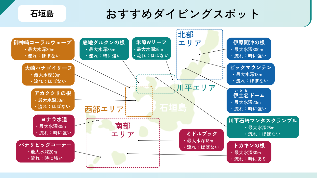 石垣島南部には、初心者でも楽しめる魅力的なダイビングスポットが点在しています。
