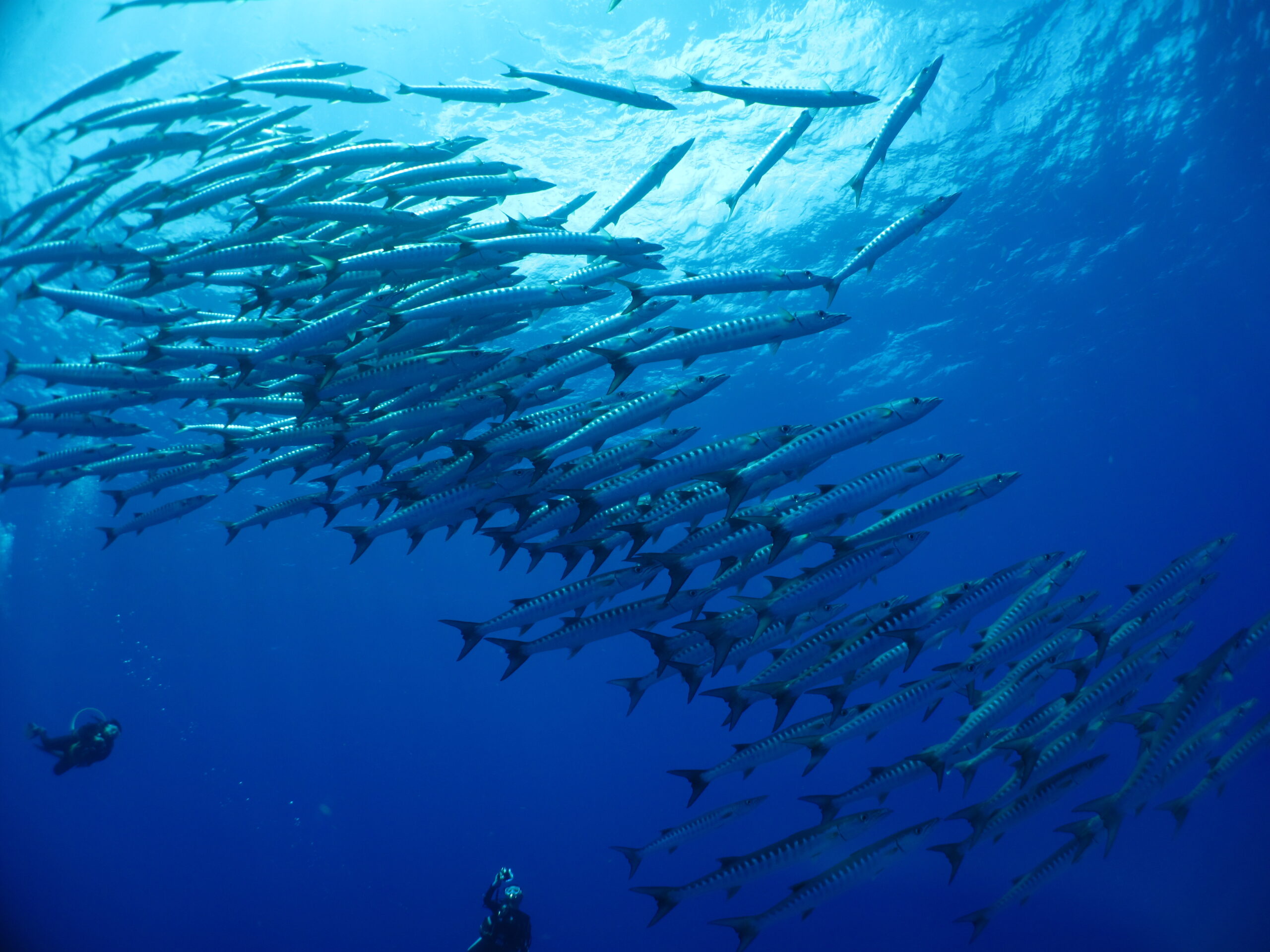 イマズニやトンバラといったポイントでは、ギンガメアジやバラクーダの群れを見ることができる可能性も高くなります。水温は26〜29℃と暖かいです。